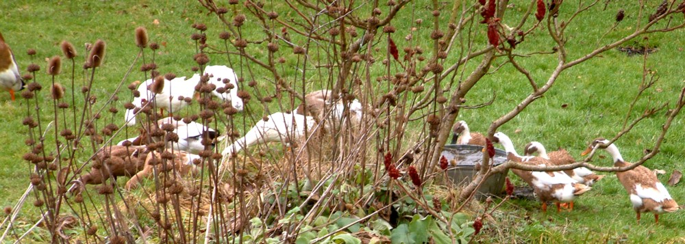 The builders told us this morning that the ducks appeared to have lost their fear of the noise and the machinery, they'd seen them several times in the frog pond ....... but I only caught them on camera out of the water, twice: